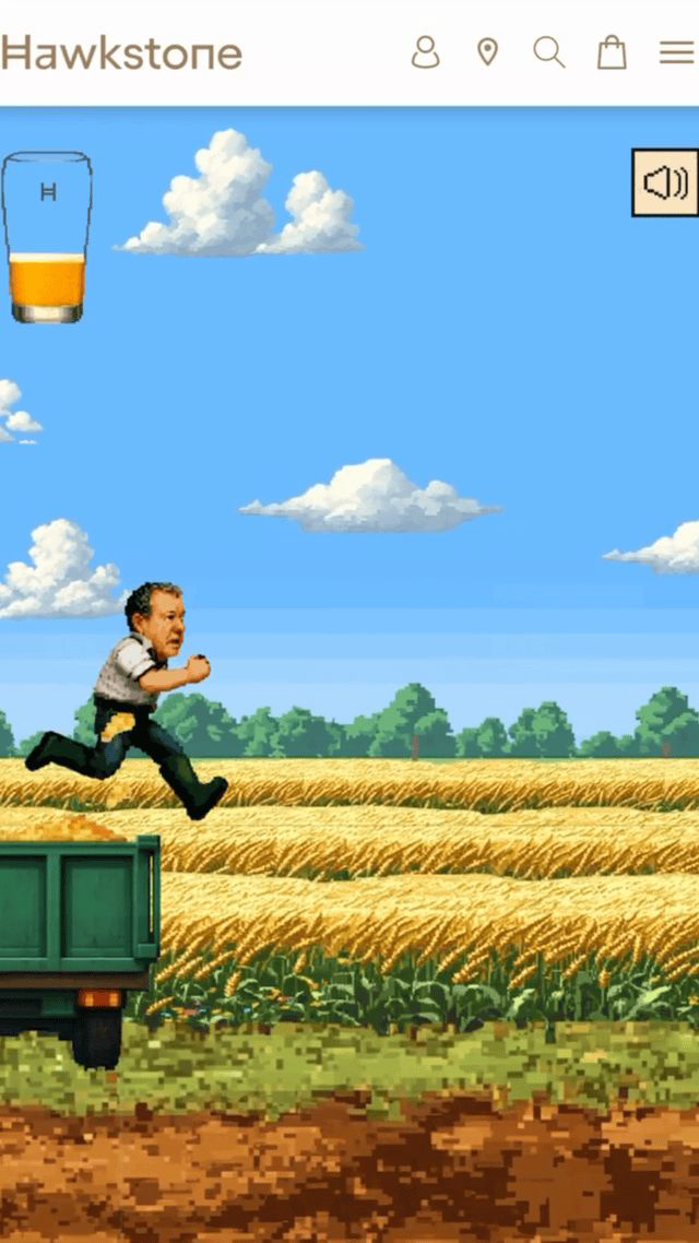 We developed a tap-to-jump farming game blending humor, skill, and brand storytelling, reinforcing Hawkstone’s authentic roots and the way in which farming contributes directly to the production of Hawkstone Beer.